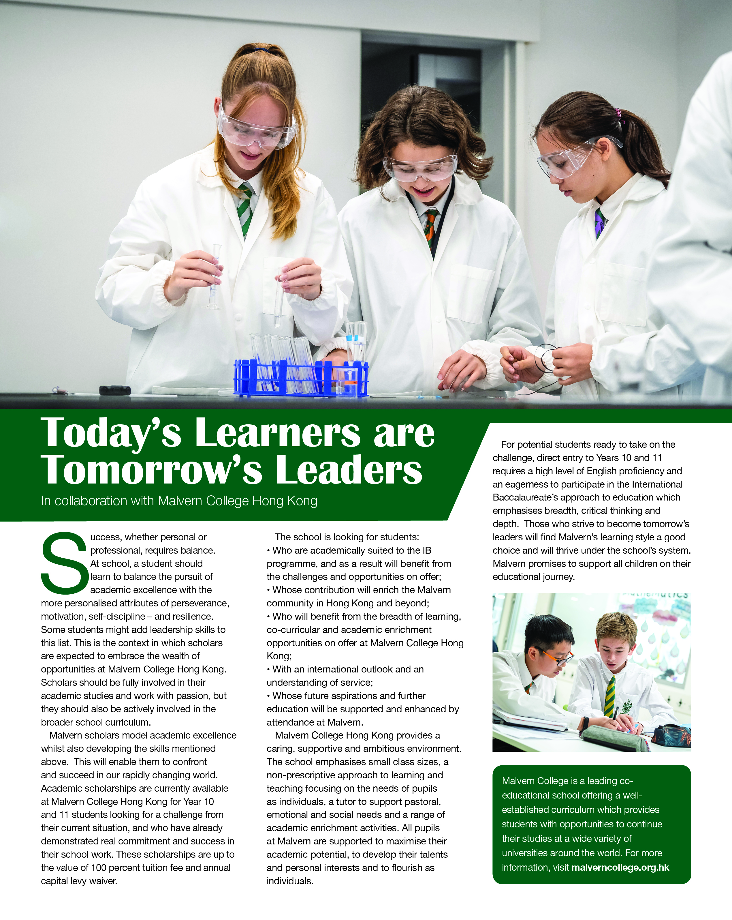 - Malvern College Hong Kong introduces a new leadership scholarship programme to help identify and foster young leaders of the future.